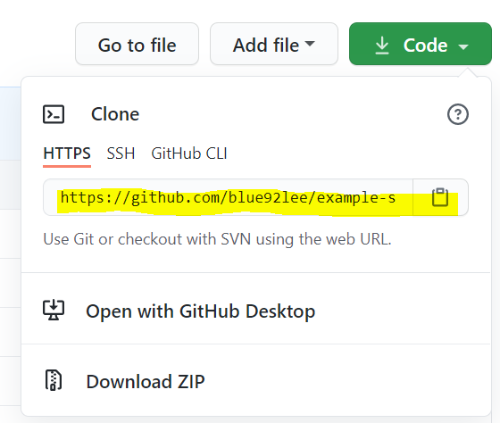 (๊ณตํต) Clone Repository ์ฐฝ์ URL๋ถ๋ถ์๋ github repository์ ์๋ url์ ์ ๋ ฅํฉ๋๋ค.
